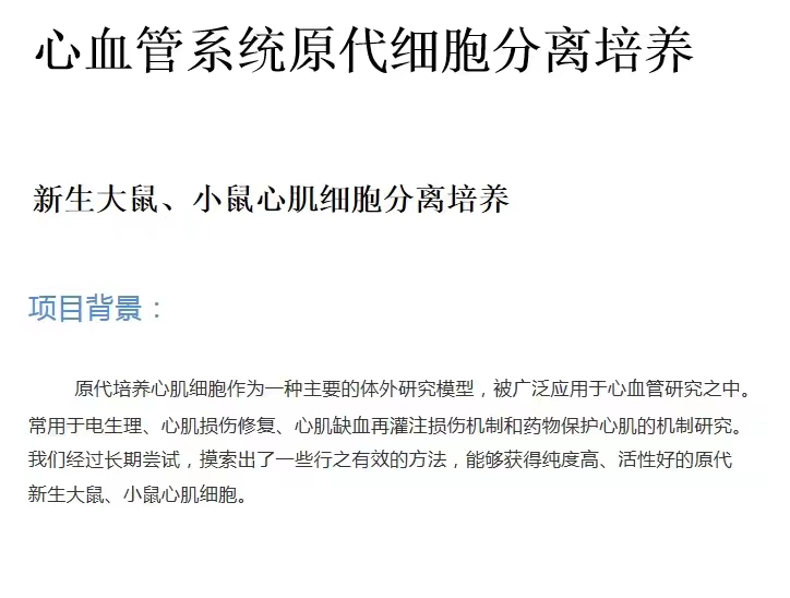 当前位置:首页  >  技术文章  >  本周模型之——新生大小鼠心肌细胞分离培养