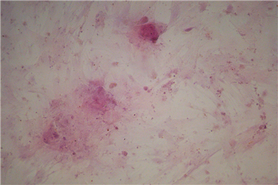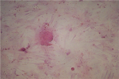 1.成骨诱导的过程是使钙离子能够以钙盐的方式沉淀下来,即“钙结节”,鉴定钙结节的染色方法常用茜素红染色法。