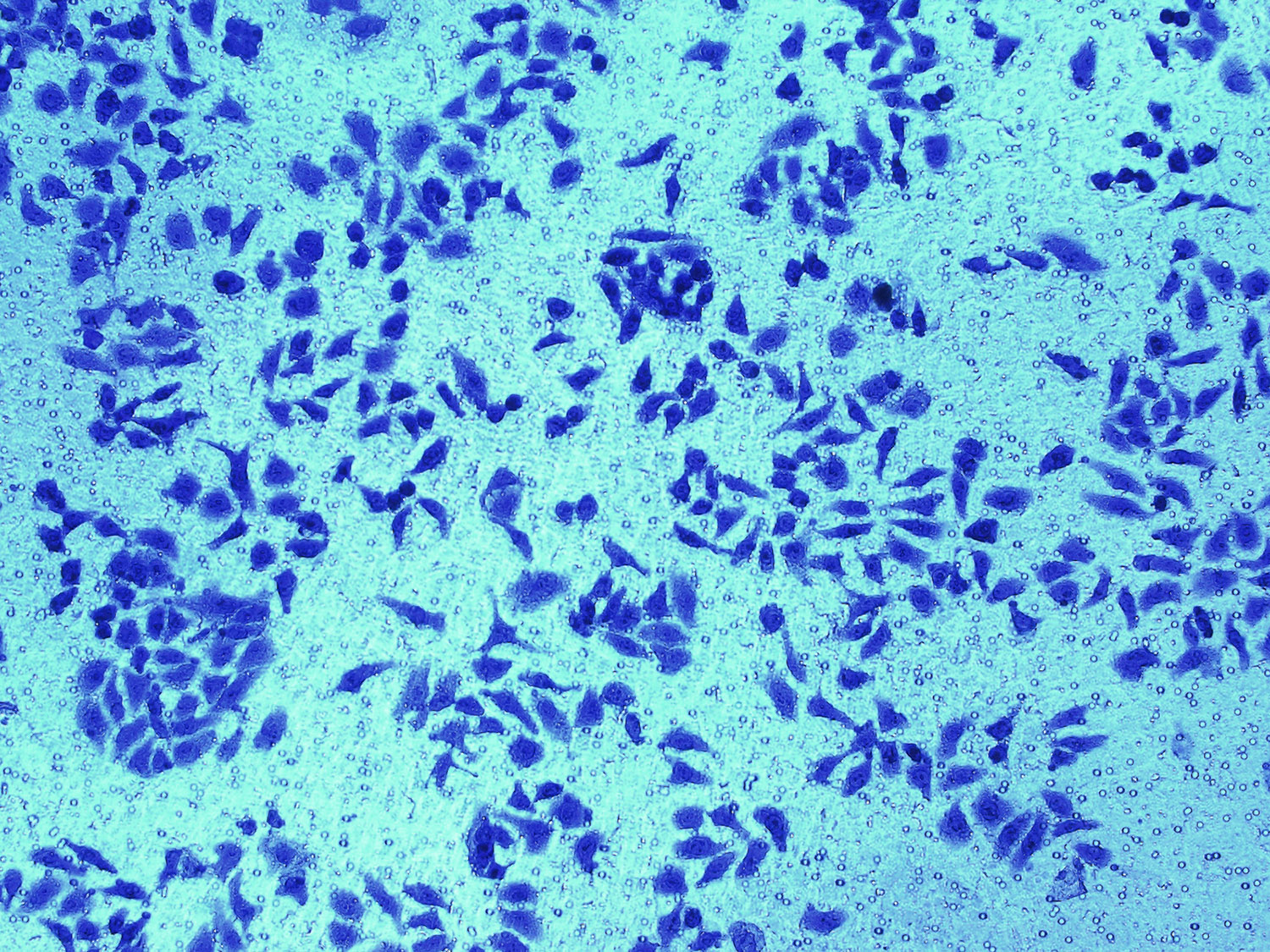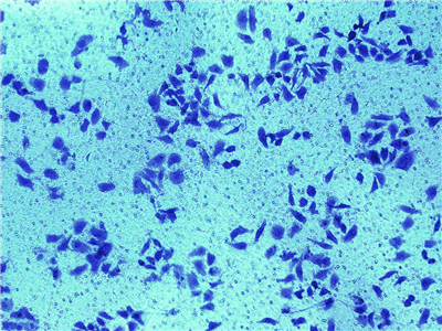 细胞划痕实验是简捷测定细胞迁移运动与修复能力的方法,在体外培养皿或平板培养的单层贴壁细胞上,用微量枪头或其它硬物在细胞生长的中央区域划线,去除中央部分的细胞,然后继续培养细胞至实验设定的时间是一种简单易行的检测细胞运动的方法,实验成本低,可以用来检测贴壁生长肿瘤细胞的侵袭转移能力。Transwell的基本原理是将transwell小室放入培养板中,小室内称为上室,培养板内称为下室,上下层培养液以聚碳酸酯膜相隔,上室内添加上层培养液,下室内添加下层培养液。将细胞种在上室内,由于膜有通透性,下层培养液中的成分可以影响到上室内的细胞,从而可以研究下层培养液中的成分对细胞生长、运动等的影响。